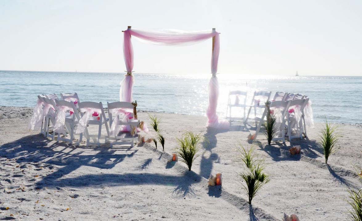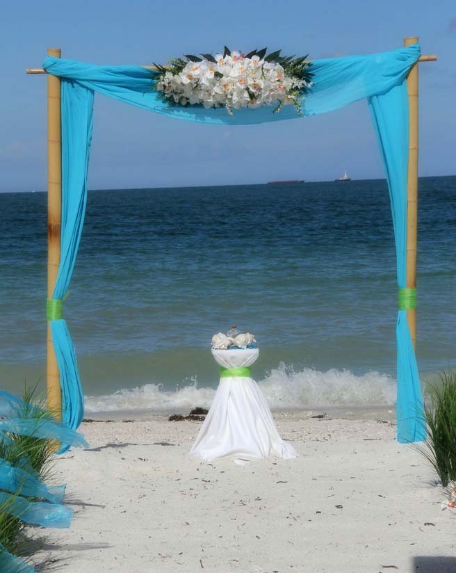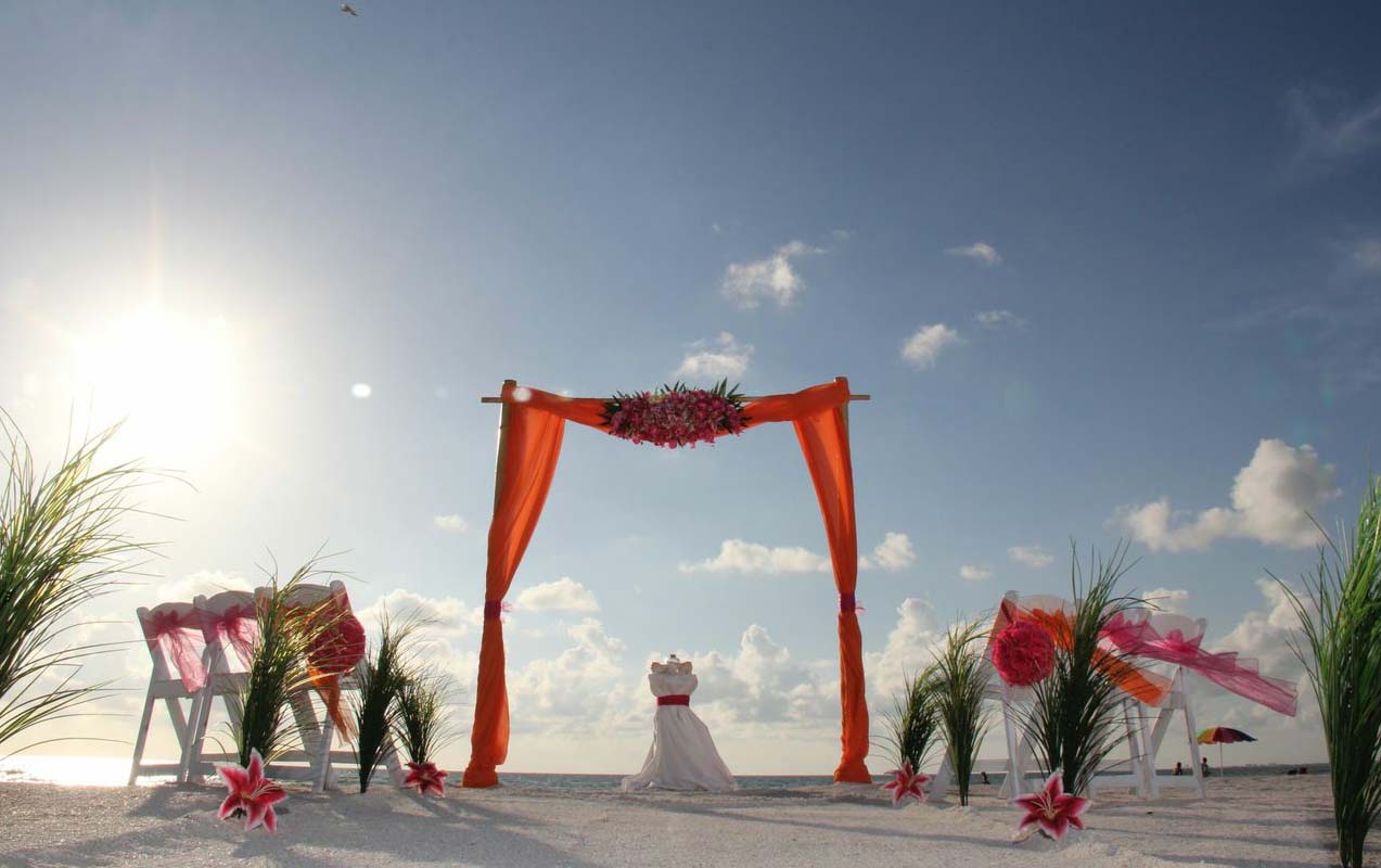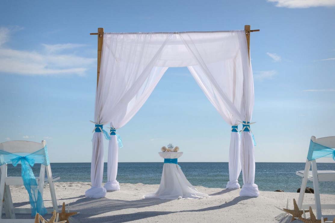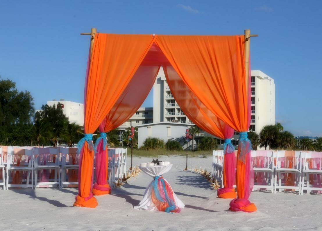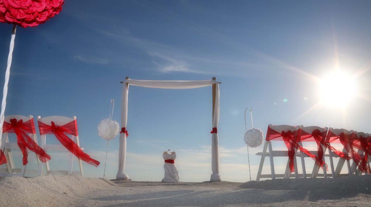 There are many choices for your beach wedding arch. Subtle colors or vibrant chiffon, two posts or four posts. Elegance and shimmer with our crystal drape or a chandelier... At Suncoast Weddings we understand this is your day and that's why we'll tailor a ceremony for the two of you. We've included galleries to inspire although if you don't see the 'look' you want, let us create it for your unique day.