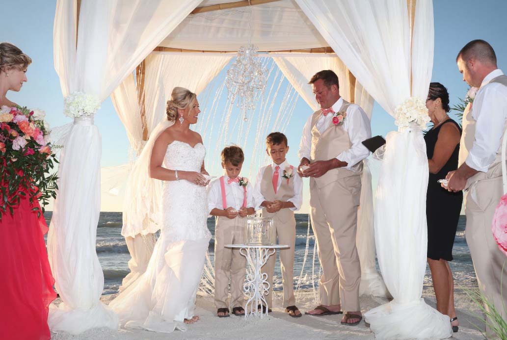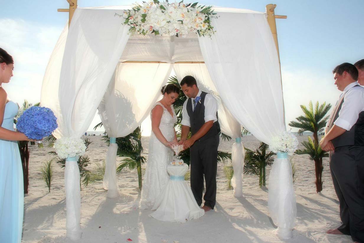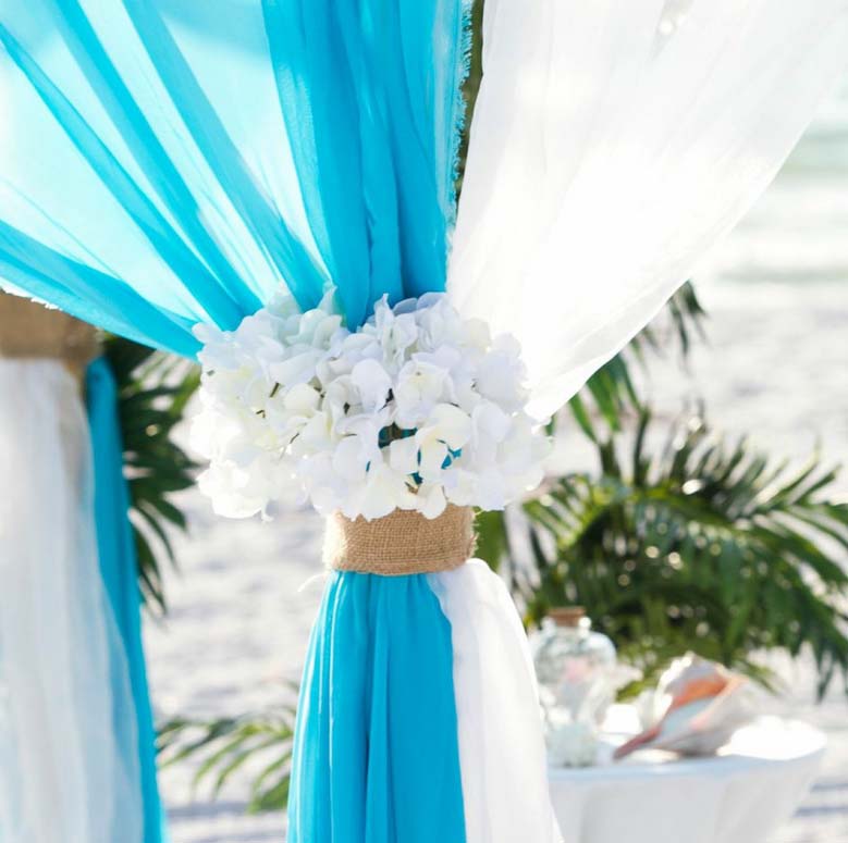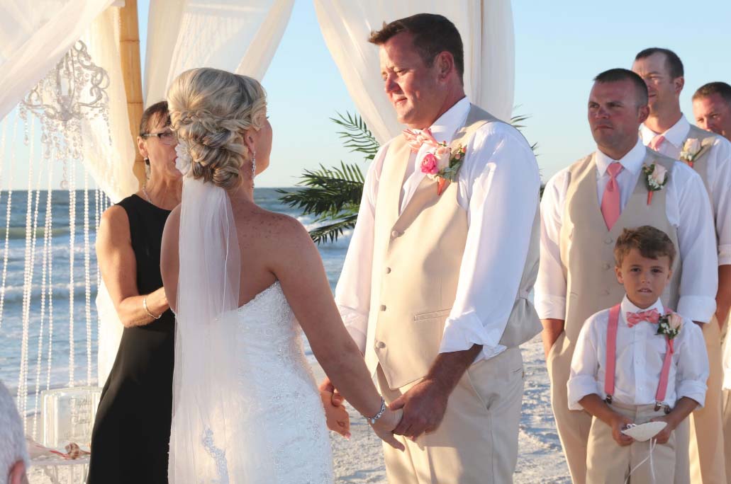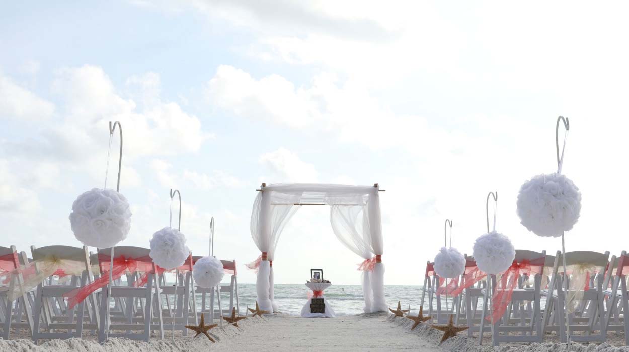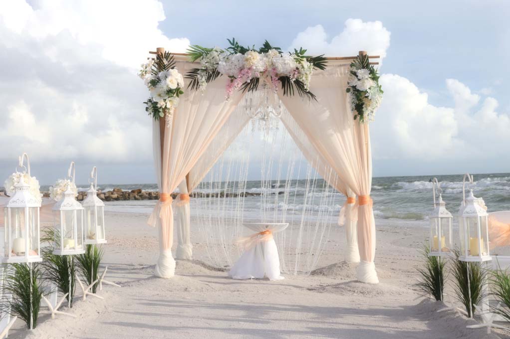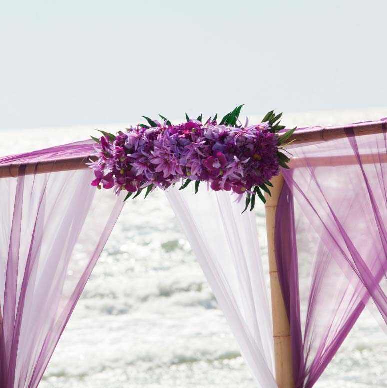 There are many choices for your beach wedding arch. Subtle colors or vibrant chiffon, two posts or four posts. Elegance and shimmer with our crystal drape or a chandelier... At Suncoast Weddings we understand this is your day and that's why we'll tailor a ceremony for the two of you. We've included galleries to inspire although if you don't see the 'look' you want, let us create it for your unique day.