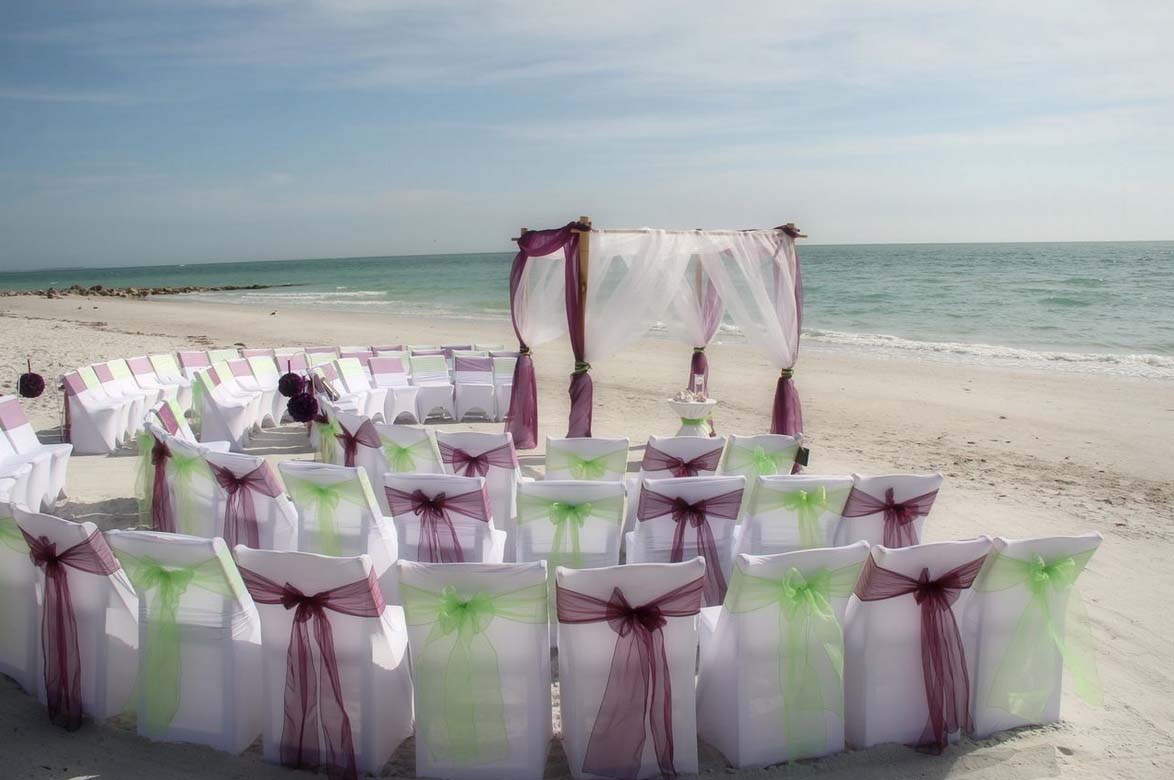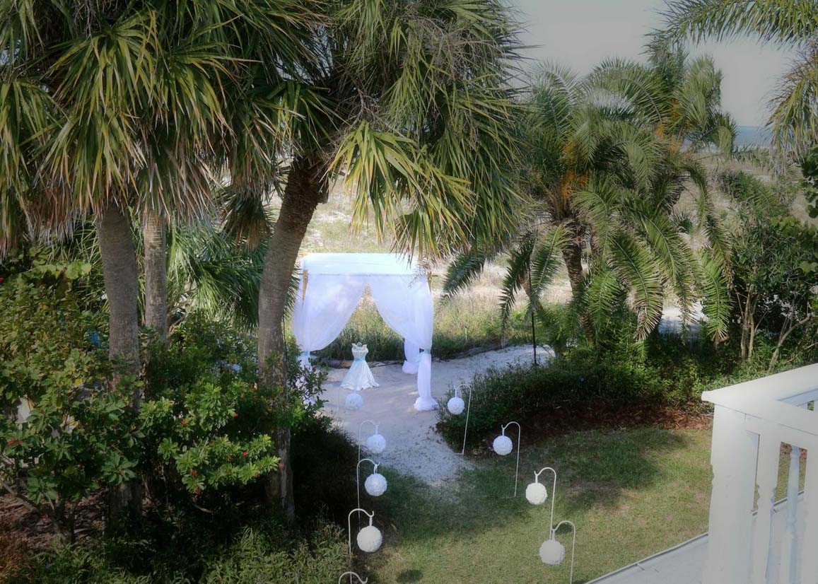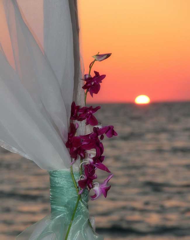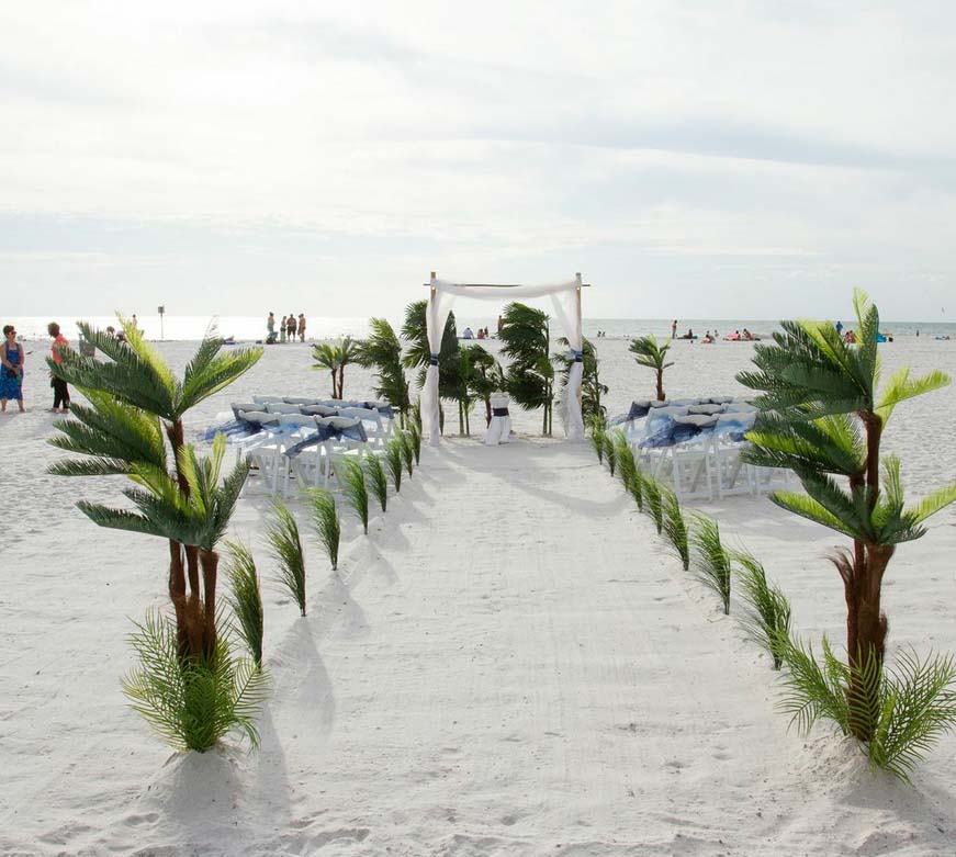 For a decadent green oasis, we have a special package designed to be romantic and intimate. Our Island Oasis package features palms and foliage to frame your archway.  The theme goes well with any combination of colors as can be seen in the gallery.