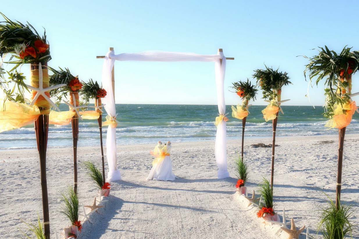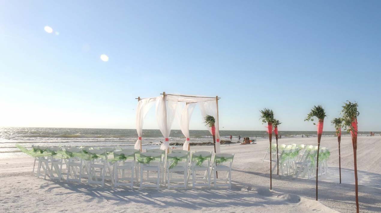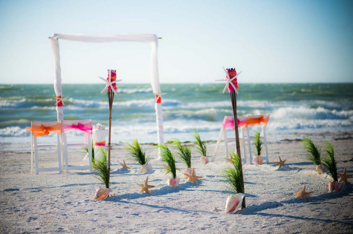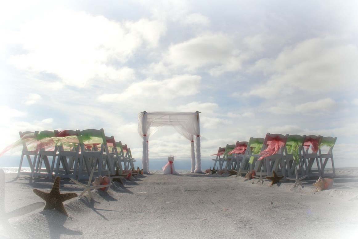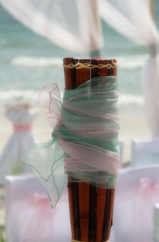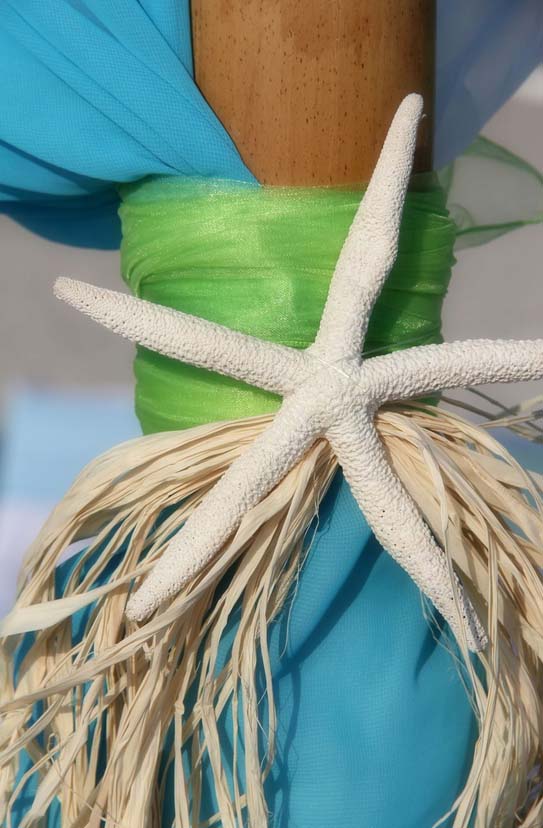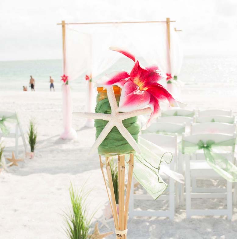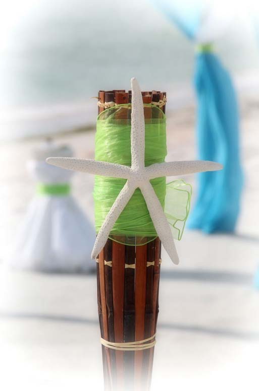 With the sea oats lining many of our local beaches, you'll have green shades as a natural aisle. Grasses lining the aisle or making a focal point of a sign can transform the ceremony space with a bright burst of color. They look great alone, or alternating with starfish or conch shells.